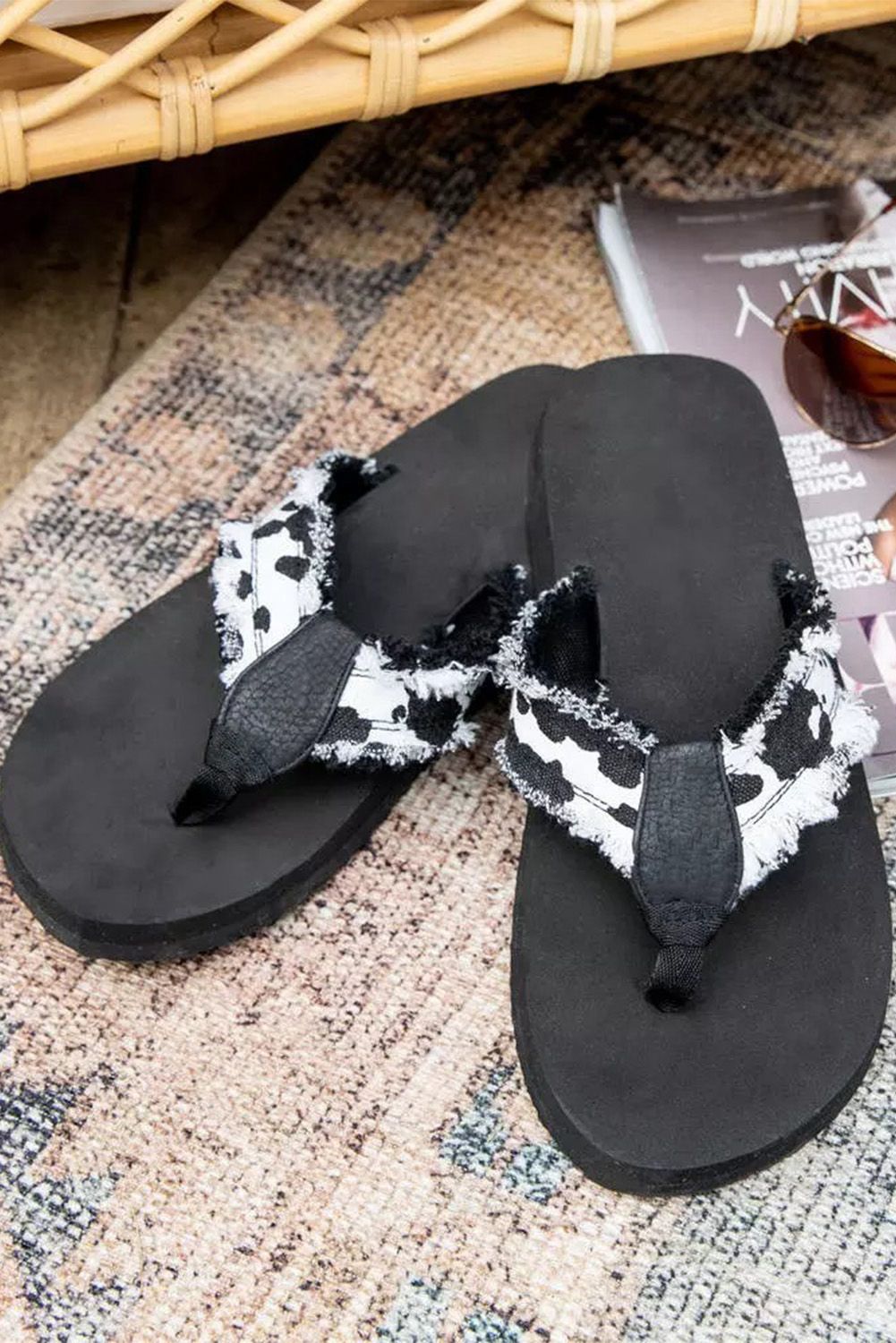 Black Gypsy Jazz Cow Print Flip Flop