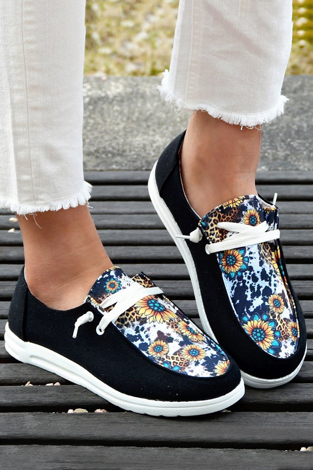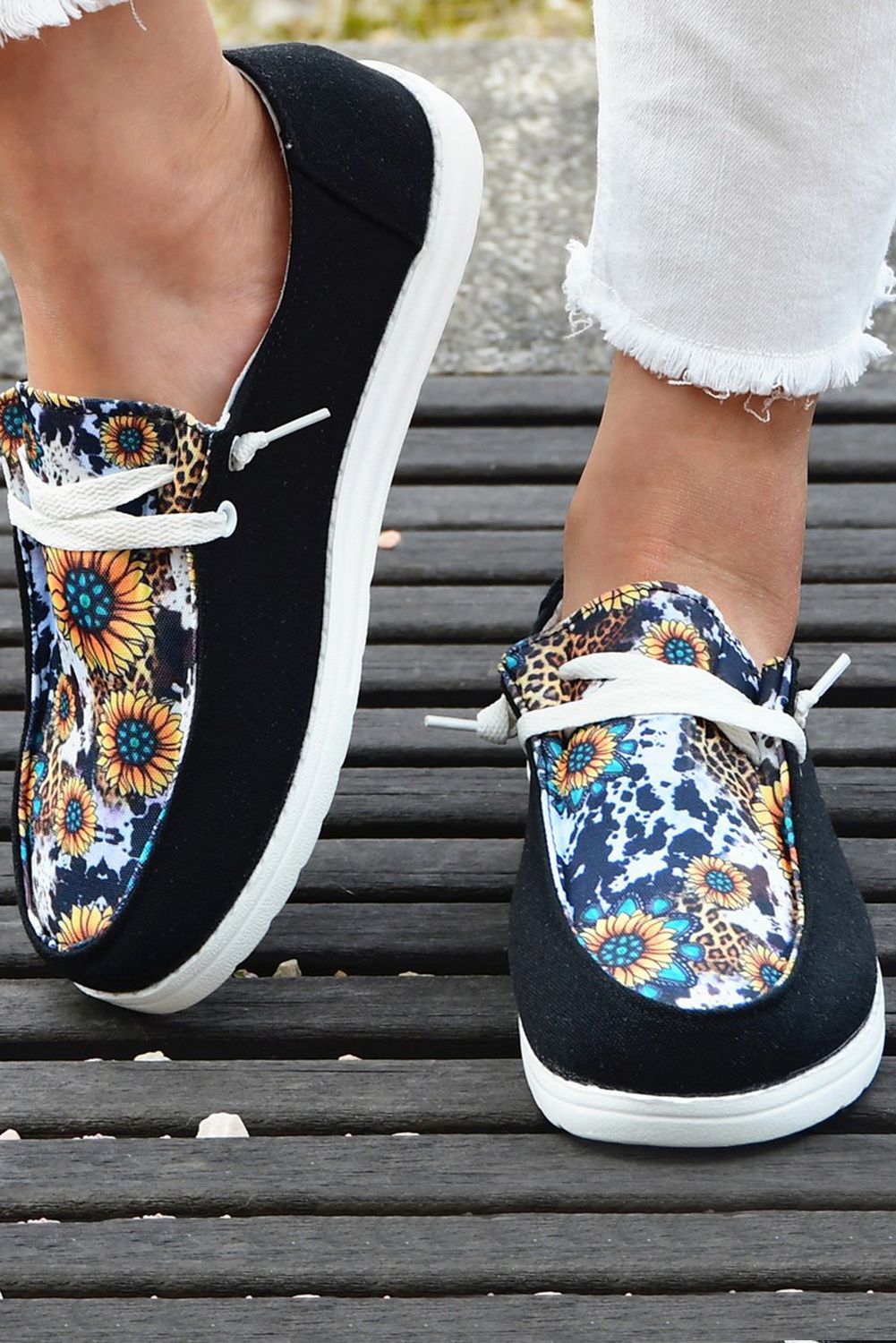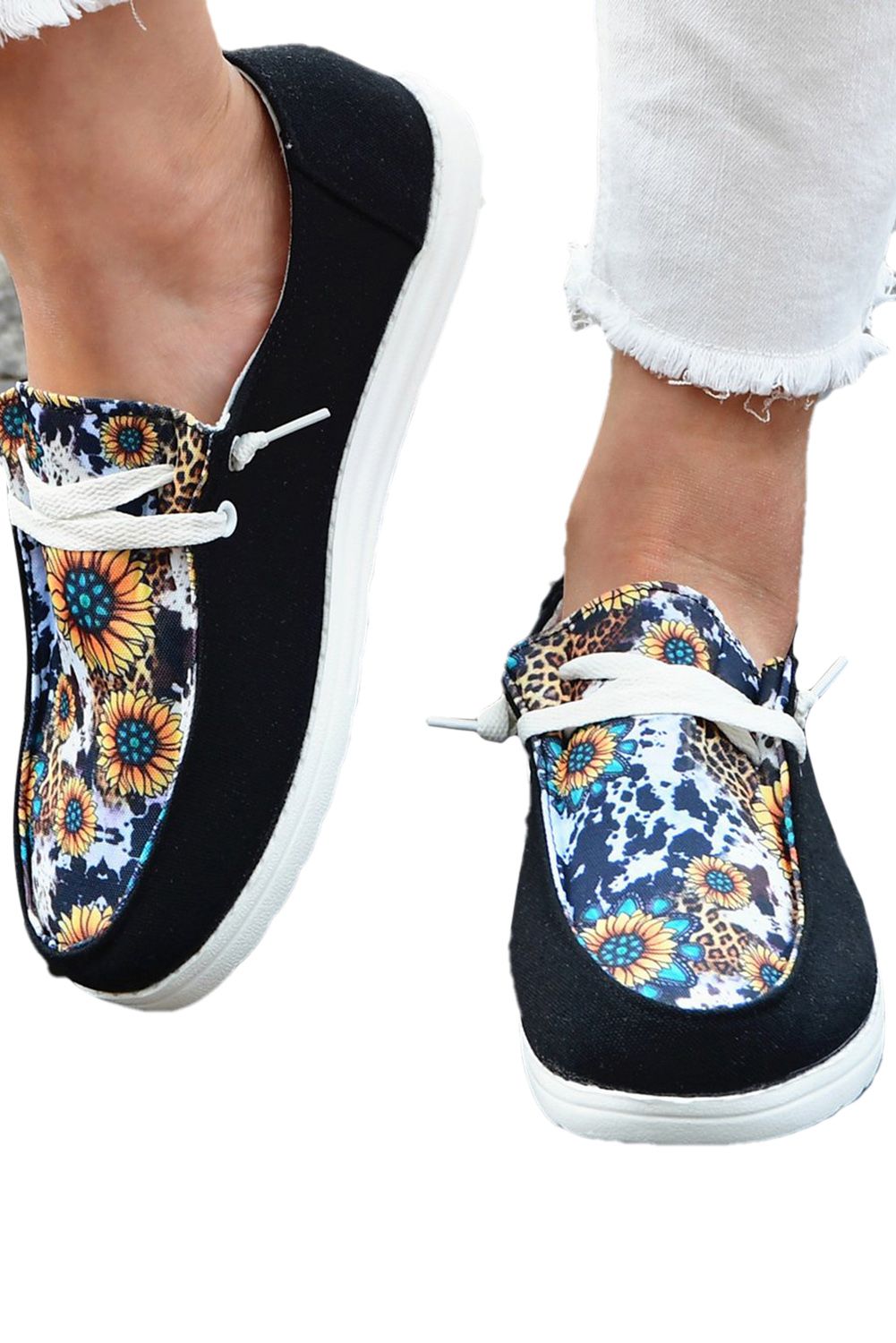 Stripes Leopard Splicing Flat Canvas Sneakers