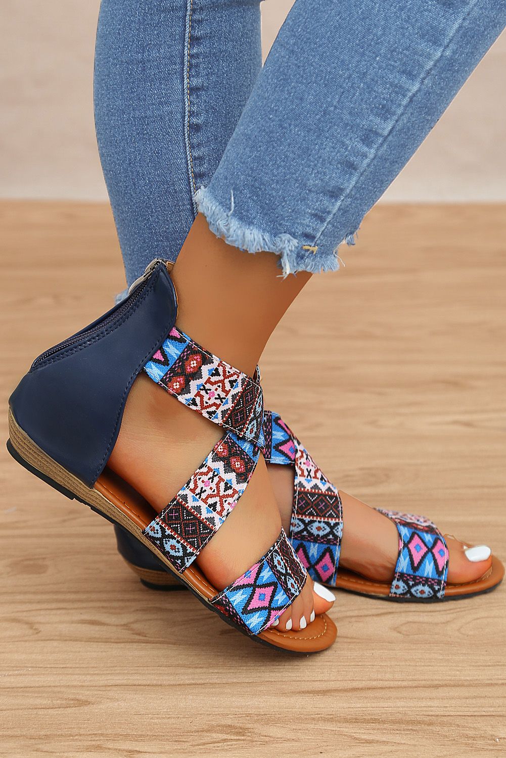 Bohemian Enthic Print Flat Slope Roman Sandals