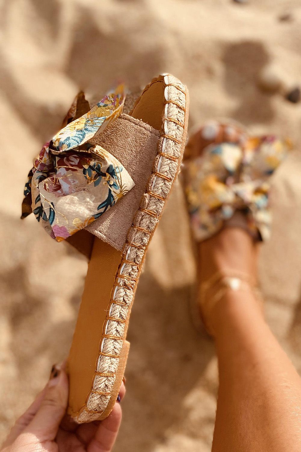 Beige Square Toe Pearl Rhinestones Flat Slippers