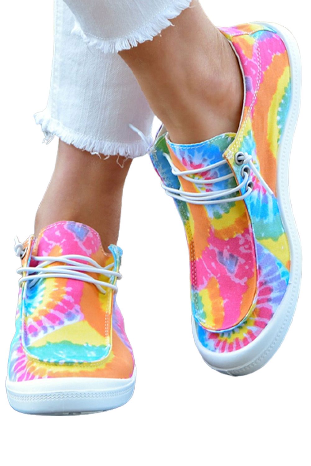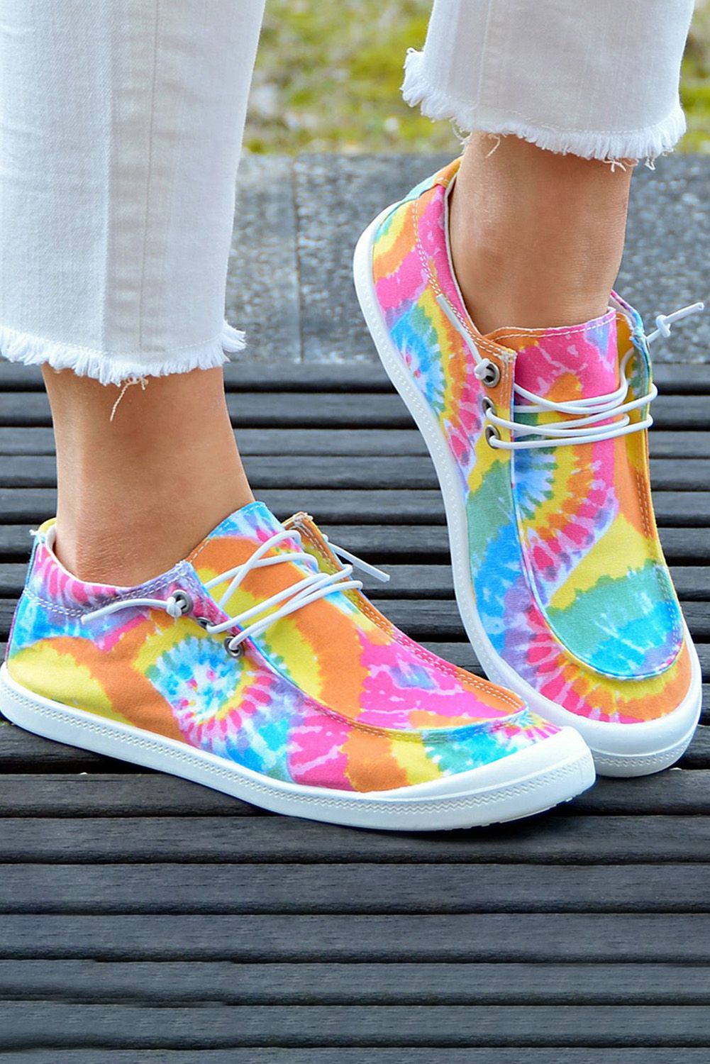 Multicolor Tie Dye Print Drawstring Slip On Canvas Sneakers