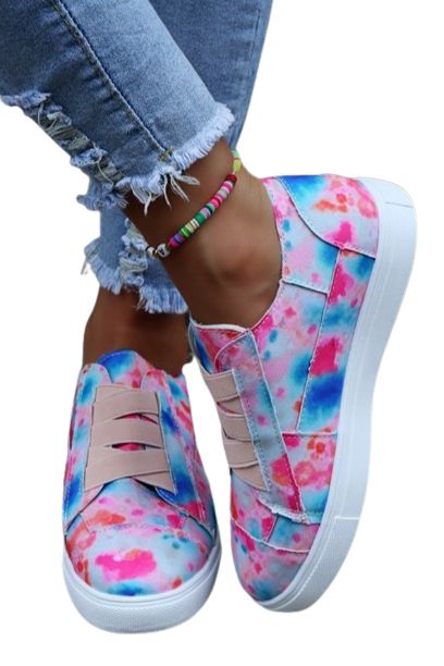 Stripes Leopard Splicing Flat Canvas Sneakers
