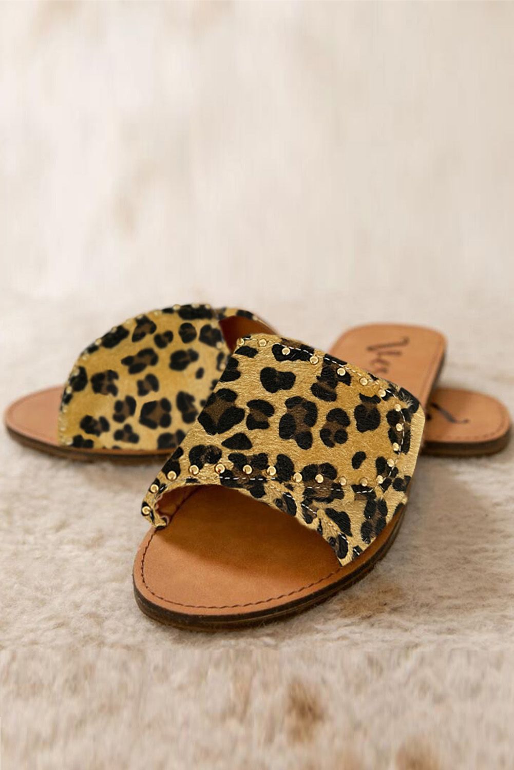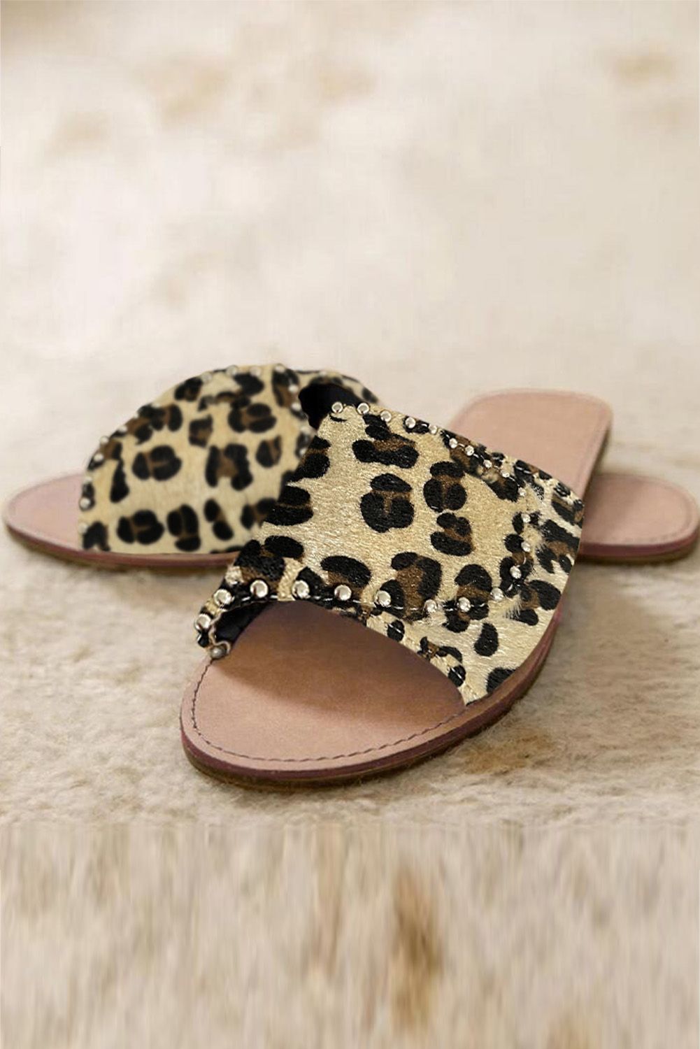 Beige Square Toe Pearl Rhinestones Flat Slippers