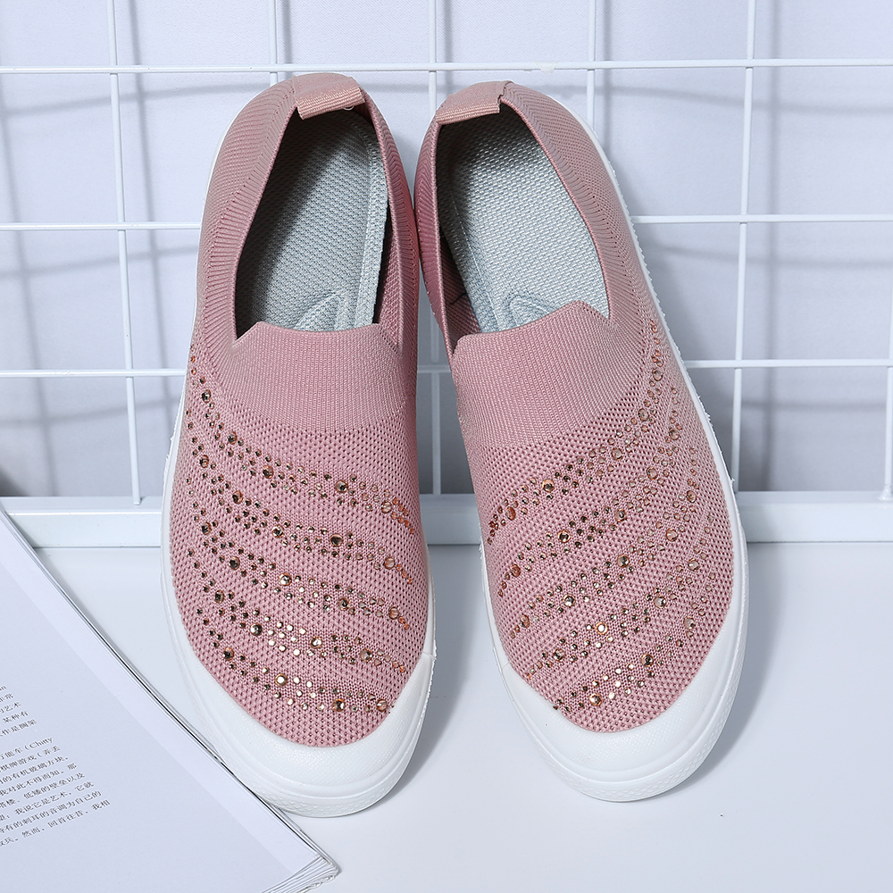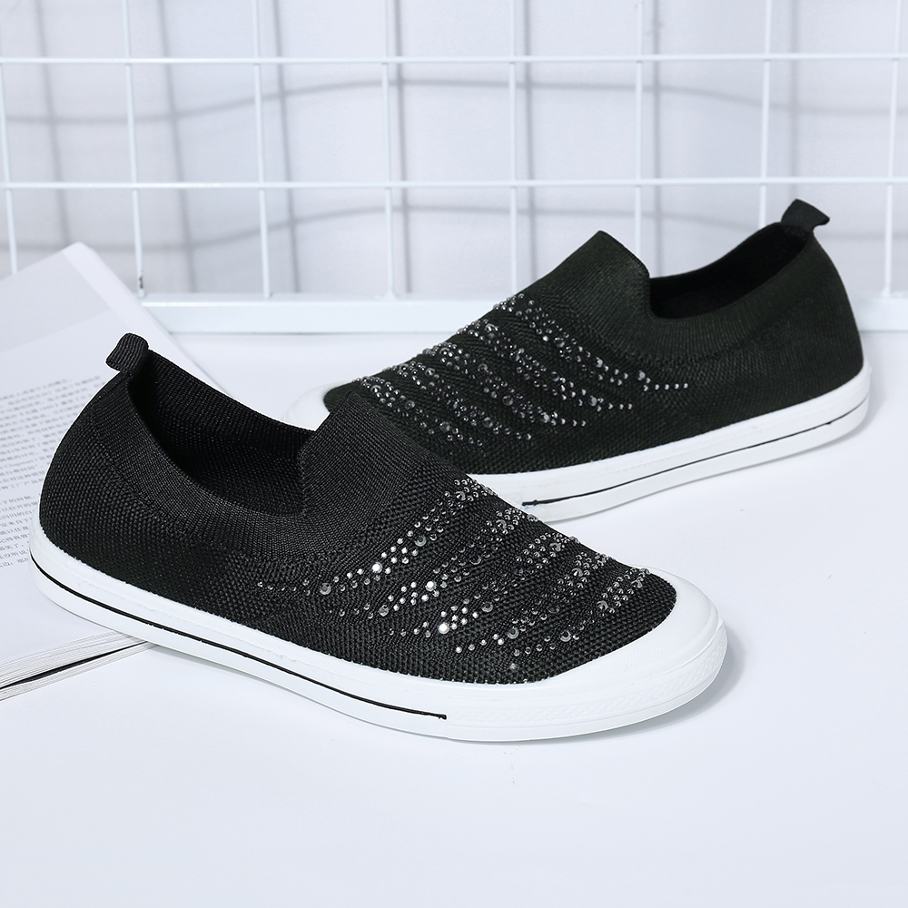 Women Rhinestone Decor Knitted Comfy Breathable Casual Slip On Sneakers
