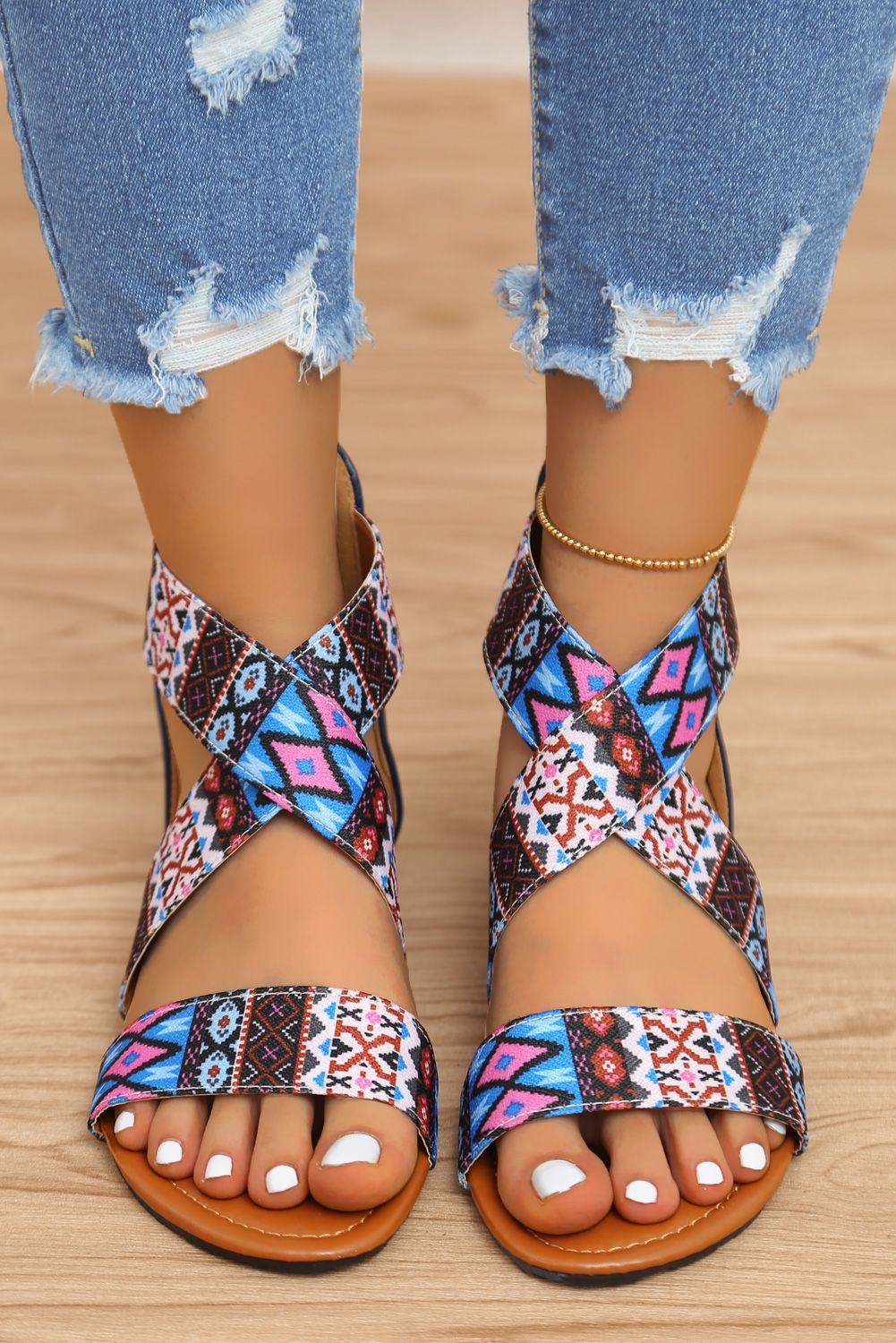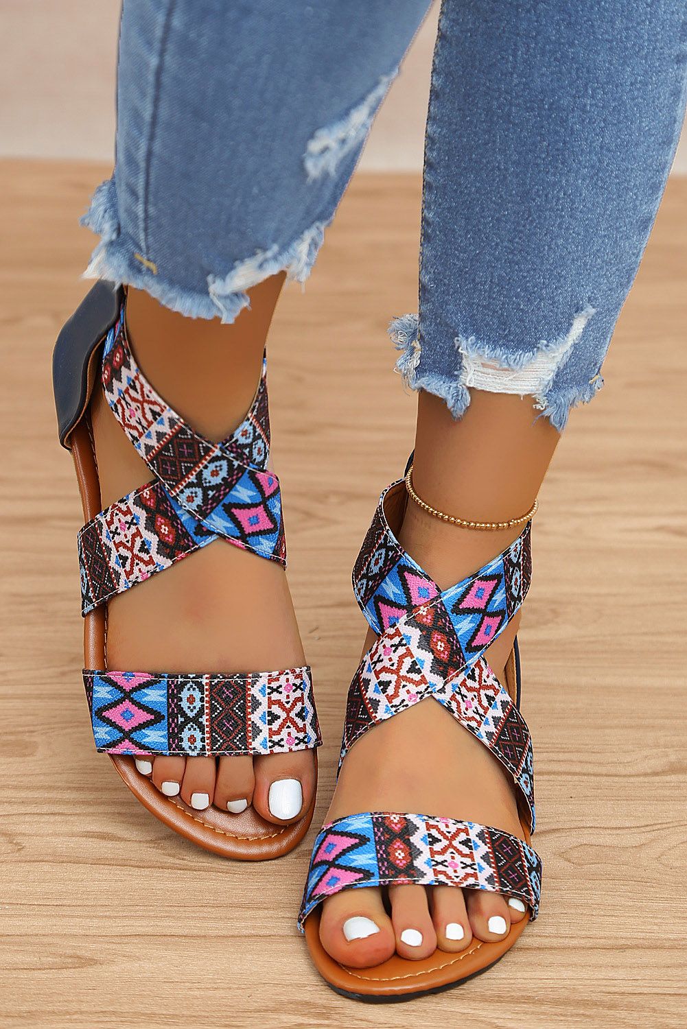 Bohemian Enthic Print Flat Slope Roman Sandals