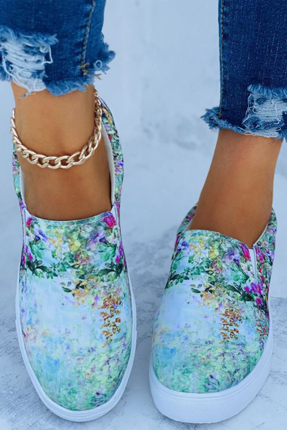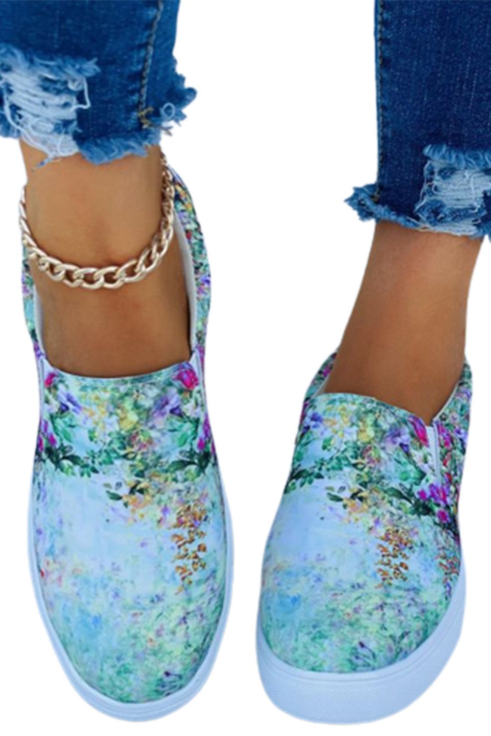 Green Gradient Floral Slip On Canvas Sneakers
