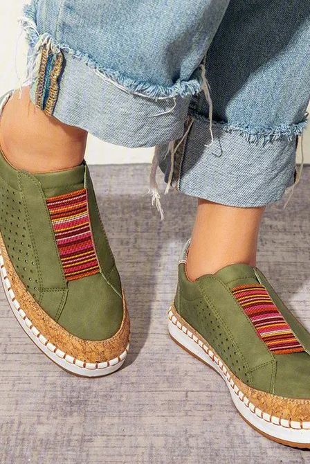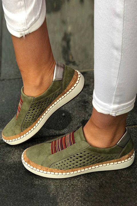 Green Hollow-Out Round Toe Flat Heel Casual Sneakers