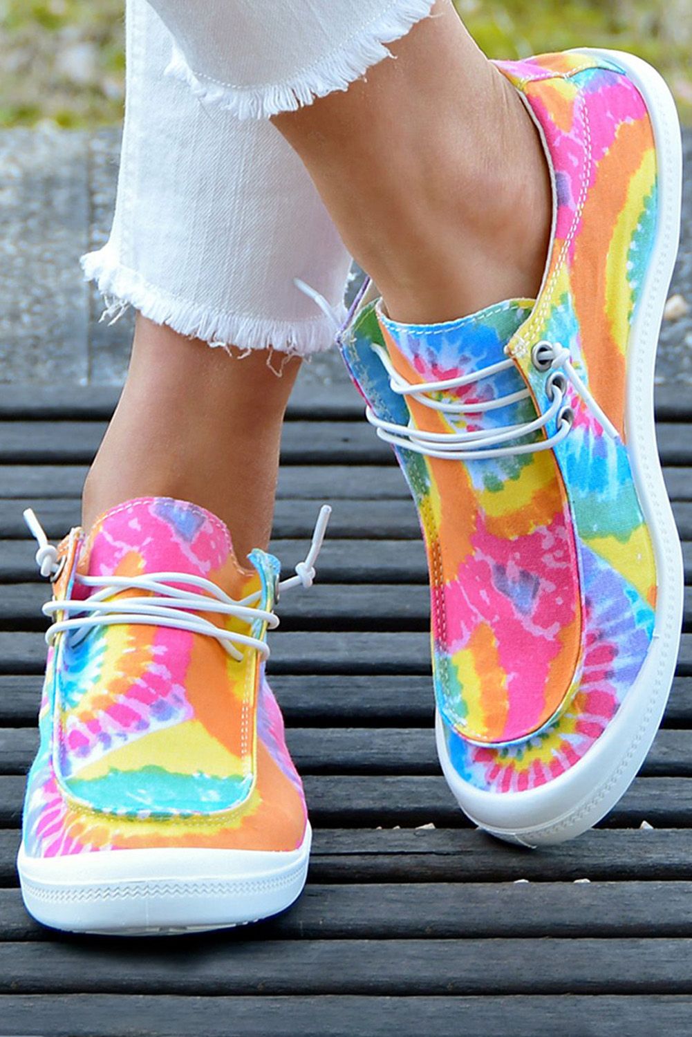 Multicolor Tie Dye Print Drawstring Slip On Canvas Sneakers