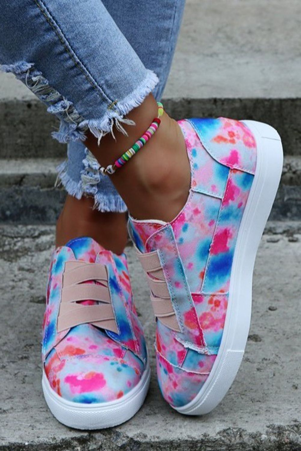 Stripes Leopard Splicing Flat Canvas Sneakers