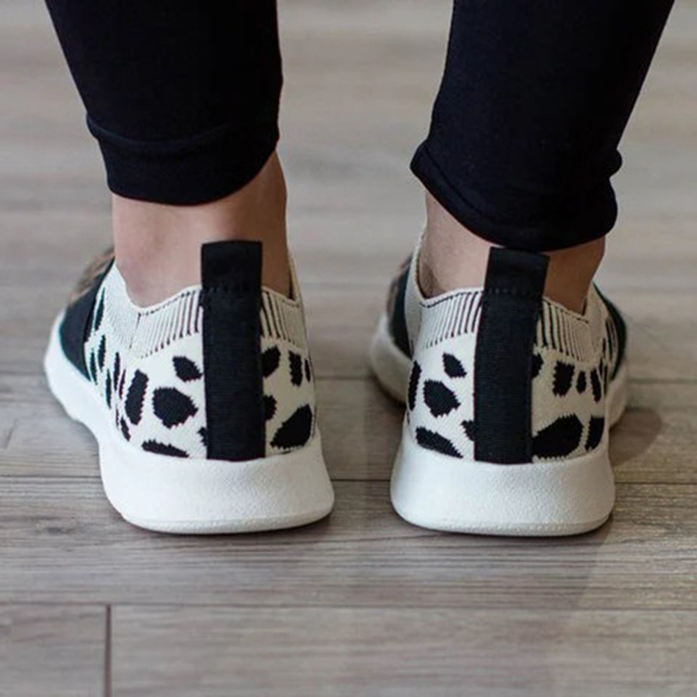 Women Large Size Mesh Breathable Leopard Pattern Elastic Band Slip On Sneakers